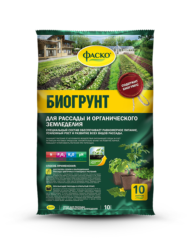 Грунт для рассады и органического земледелия Фаско с биогумусом, является экологически чистым грунтом, который полностью готов к эксплуатации. Основа благоприятной почвы состоит из качественного торфа с добавлением всех необходимых полезных элементов, включая биогумус. Благодаря пропорциональному составу и балансу кислотности, грунт для рассады и органического земледелия является оптимальной средой для активного роста растений. А микрофлора, содержащаяся в нем, полезна для почвы и способствует повышению ее плодородности и улучшению структуры, восстанавливает грунт после истощения. Высокая влаго- и воздухоемкость, и другие физические качества стимулируют прорастание семян, обеспечивают растения влагой, а также повышают их устойчивость к болезням!