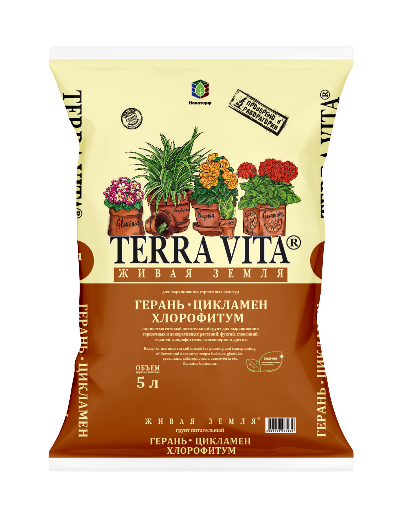 —Для Герани, Цикламена,Хлорофитума грунт 5л Живая Земля Фарт /5шт