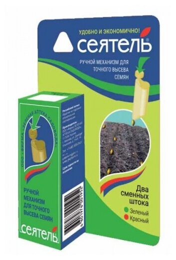 Экономит дорогостоящие семена; безопасно и экологично; обеспечивает точный высев семян в грунт; удобно в использовании; посевы не нужно прореживать. Особенности использования для разных семян: при посеве семян диаметром до 1,5 мм (морковь, салат, петрушка, укроп) использовать зелёный шток; семена диаметром до 3,5 мм (дражированные семена, редис, лук и другие) высевать с красным штоком.
