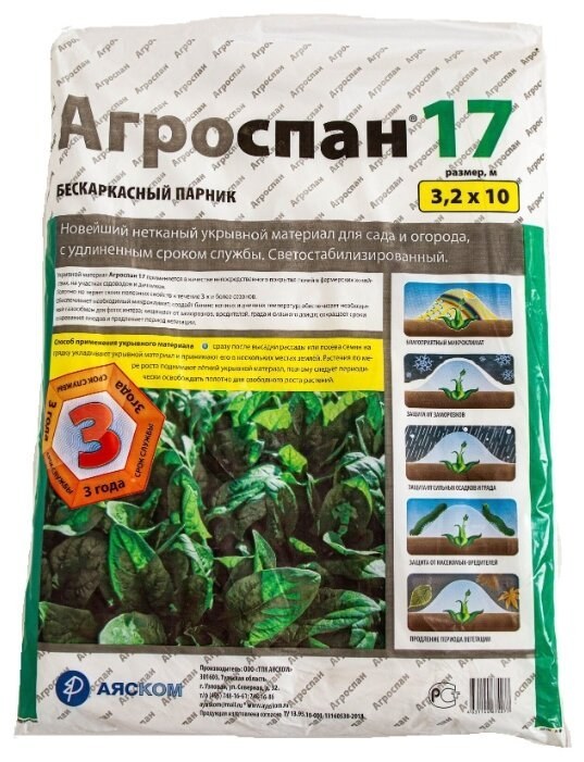 Применяется в решении целого комплекса проблем - укрывать грядки и свежие газонные посевы для предотвращения негативного влияния извне. Используется для защиты растений от палящего солнца, вредителей (насекомых, птиц, животных, некоторых соседей), чрезмерных осадков; Также применяется для создания здорового микроклимата и увеличения периода вегетации растений.