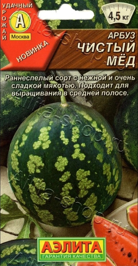 Раннеспелый сорт. Арбузы с отличными вкусовыми качествами. Прекрасно подходит для выращивания в средней полосе. Первый урожай созревает через 90-95 дней после всходов. Растения плетистые, главная плеть достигает 1,8-2,5 м. Плоды массой 2,5-4,5 кг, характеризуются высоким содержанием сахара (около 11 %). Мякоть красного цвета, нежная и зернистая, очень сочная и сладкая. Арбузы можно употреблять как в свежем виде, так и для приготовления холодных напитков и некоторых кулинарных блюд. Сорт устойчив к антракнозу и кратковременным похолоданиям в начале вегетации.