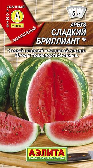 Раннеспелый, высокоурожайный сорт. В средней полосе и северных регионах рекомендуется для выращивания в теплице. Растения среднеплетистые. Плоды массой 3-5 кг. Мякоть сладкая, нежная, превосходного вкуса. Сорт отличается устойчивостью к антракнозу. Плоды транспортабельные. Товарные качества сохраняются две недели после съема.