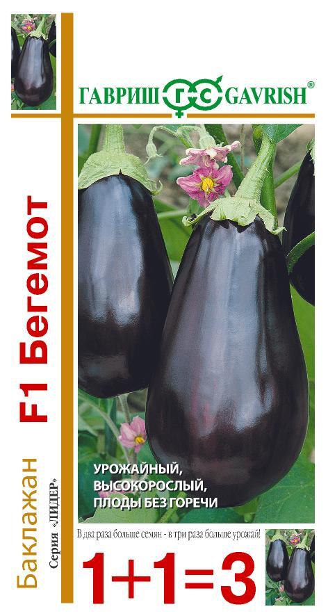 Среднеспелый (100-110 дней от всходов до плодоношения) высокорослый (0,7-1,5 м в пленочных теплицах, до 2,5 м в остекленных теплицах) гибрид для пленочных и остекленных теплиц. Плоды грушевидной формы, длиной 14-18 см, диаметром 4,5-8,0 см, темно-фиолетовой окраски, с глянцевой поверхностью, массой 250-350 г. Мякоть средней плотности, желтовато-белая, без горечи. Урожайность одного растения 1,8-2,5 кг, до 6 кг в зависимости от условий. Посев на рассаду производят в конце февраля. Пикировку — в фазе семядолей. Высадку рассады в пленочные теплицы — в конце мая в возрасте 50-60 дней. Формировка: удаление всех боковых побегов и листьев до первой развилки. К концу июля на растении оставляют 5-6 самых крупных завязей, другие цветы и завязи удаляют. Схема посадки: 40х60 см.