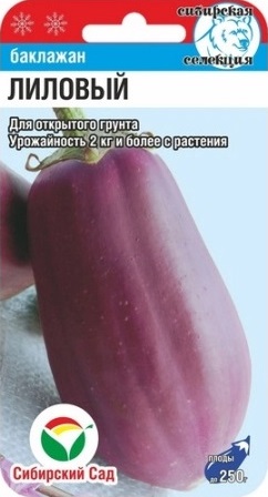 Новый среднеранний урожайный сорт для открытого грунта и пленочных укрытий. Плоды этого сорта отличаются оригинальным светло-сиреневым цветом и хорошим вкусом без горечи. Растение компактное, высотой до 50 см, формирует красивые светлые цилиндрические плоды длиной 15-20 см с белой плотной мякотью, массой до 250 гр. Средняя урожайность сорта – 2 кг плодов с растения. Рекомендуется для всех видов переработки