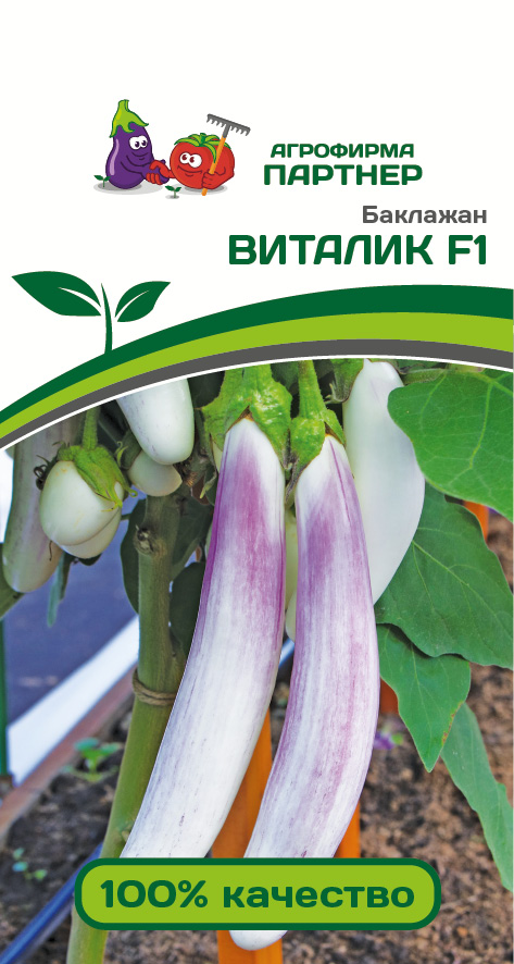 Раннеспелый гибрид для открытого и защищенного грунта. С момента высадки 60-70 дневной рассады до технической спелости проходит 60-65 дней. Высота растения — 70-90 см. Кусты средней силы роста, полураскидистые. Плоды цилиндрической формы, вытянутые, глянцевые, необычайно красивой окраски: белые с легкими размытыми продольными полосами фиолетового цвета, выровненные по форме и размеру. Длина баклажанов 25-30 см, диаметр серединной части около 7 см, масса плодов — 150-250 г. На разрезе плоды белые, семена практически отсутствуют. Консистенция мякоти плотная, вкус очень приятный, сладковатый, горечь отсутствует генетически. Гибрид отлично завязывает плоды в условиях длинного светового дня, устойчив к перепадам температур, вирусу табачной мозаики (TMV) и корневым гнилям. Рекомендуется формировать растение в 3 стебля. Плотность посадки — 4 растения/м². Урожайность — до 10,0 кг/м².