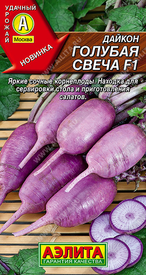 Красивый гибрид вкусного и полезного дайкона. Украшение любого стола! Урожай созревает через 65-75 дней после посева семян. Корнеплоды яркие, ровные, гладкие, массой 100-200 г, длиной 12-15 см. Легко выдергиваются из почвы. Мякоть с пурпурной сердцевиной, сочная и нежная, без пустот. Гибрид подходит для карвинга и приготовления витаминных салатов.