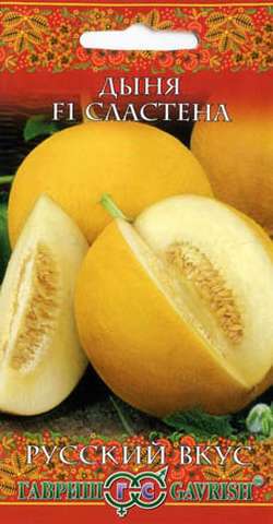Среднеспелый (69-90 дней от всходов до плодоношения) гибрид для выращивания в пленочных теплицах. Растение среднеплетистое. Плоды округлые, желто-оранжевые, гладкие, с нежной сеткой или без нее, массой 1,1-1,8 кг. Кора средней толщины, мякоть кремовая, очень сладкая с дынным ароматом. Семенное гнездо маленькое.