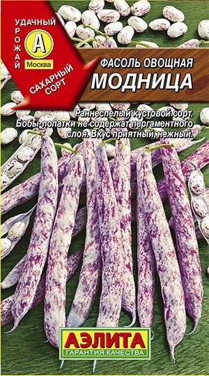 Раннеспелый, спаржевый сорт. От всходов до технической спелости бобов – 50-60 дней. Растения кустовые, высотой 40-50 см. Бобы длиной до 18 см, широкие. На растении созревает до 70-75 штук. В фазе технической спелости створки бобов не содержат пергаментного слоя и грубых волокон. Используются для консервирования и замораживания целиком. В фазе биологической спелости используются семена: в супах, салатах и гарнирах. Урожайность бобов – 1,8-2 кг/м2.