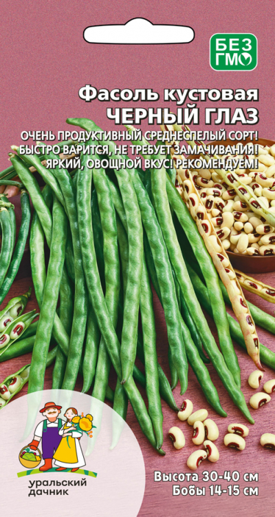 Урожайный среднеспелый сорт. От всходов до первого сбора бобов 55-65 дней. Растение кустовое, высотой не более 30-40 см. Бобы слабоизогнутые, светло-зеленые, узкие, длиной 14-15 см, без пергаментного слоя. Семена почковидные, белые, с черным глазком. В одном бобе содержится 13-15 семян. Стручки целиком используются в стадии молочной спелости для приготовления салатов, вторых блюд, для консервирования и заморозки. Зрелые семена также используются в домашней кулинарии.