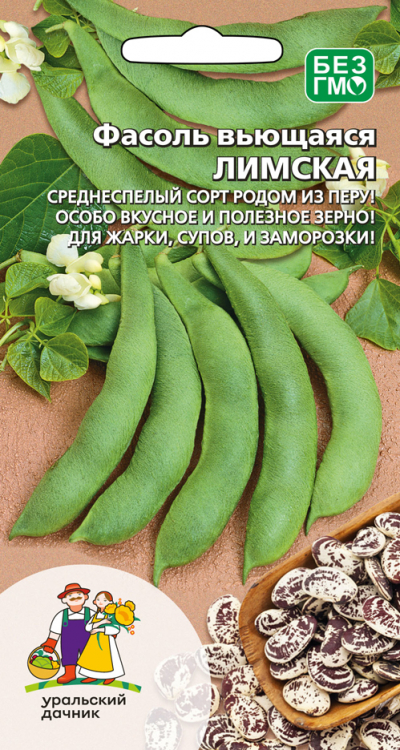 Неприхотливый сорт с высоким содержанием белка. Это делает его незаменимым для вегетарианского и постного питания. Растение вьющееся, вырастает до 1,5 м. Бобы длиной 10-12 см, слегка изогнутые. Количество семян 3-4 шт., размером 2-2,5 см. Семена в недозрелом виде бело-розового цвета, после созревания становятся темно-фиолетовые с белыми пятнами.