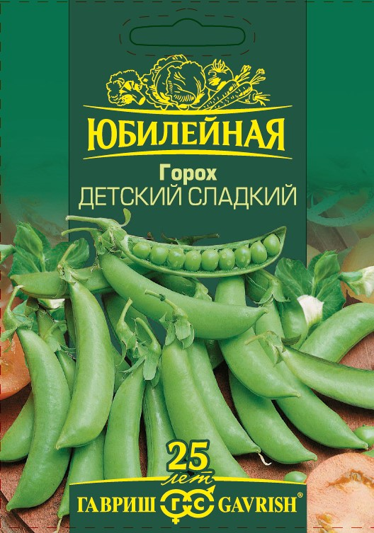 Каждый огородник желает вырастить такой горох, что послаще и покрупнее. И чтобы давал хороший урожай, мало поражался болезнями, вредителями, и созревал в нужное время. Ведь десертные лопатки с сочными семенами — это ценный диетический продукт богатый белками, сахарами, крахмалом, витаминами и каротином. Одним из таких супер сахарных сортов является Детский сладкий. Раннеспелый. Растение высотой до 80 см. Боб слабоизогнутый, с заостренной верхушкой, без пергаментного слоя, длинный, широкий. В каждом бобе завязывается 7-9 сахарных горошин. Стенки бобов толстые, мясистые, на вкус сладкие, без наличия жестких тканей. Рекомендуется для употребления недозрелых бобов в свежем виде. Урожайность 1,0-1,5 кг/м2. Посев производят ранней весной на солнечной стороне участка на глубину 4-6 см. Схема посева: 15x30 см. Растениям требуется подвязка.