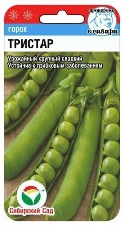 Среднеспелый урожайный сорт с вкусными сладкими горошинами. Период от полных всходов до начала технической спелости горошин 57-61 день. Растение высотой 70-80 см. Бобы крупные, длиной 70 мм, широкие, темно-зеленые. В стручке до 8 крупных сладких зеленых горошин, выровненных по размеру. Отличные вкусовые качества. Сорт рекомендован для употребления в свежем виде, замораживания и консервирования.