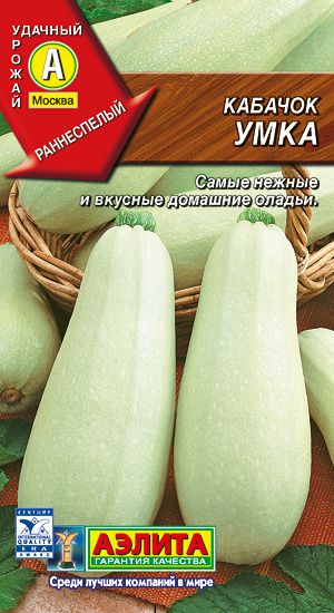 Хорошо известный, неприхотливый белоплодный сорт. Раннеспелый , от всходов до первого съема плодов 40-44 дня. Растения кустовые, сильноветвящиеся. Плоды массой 0,5-1,3 кг. Мякоть кремовая, средней плотности, нежная, с великолепным вкусом. Рекомендуется для дие-тического питания, отлично подходит для приготовления различных зимних заготовок. Урожайность высокая 8-10 кг/м2.