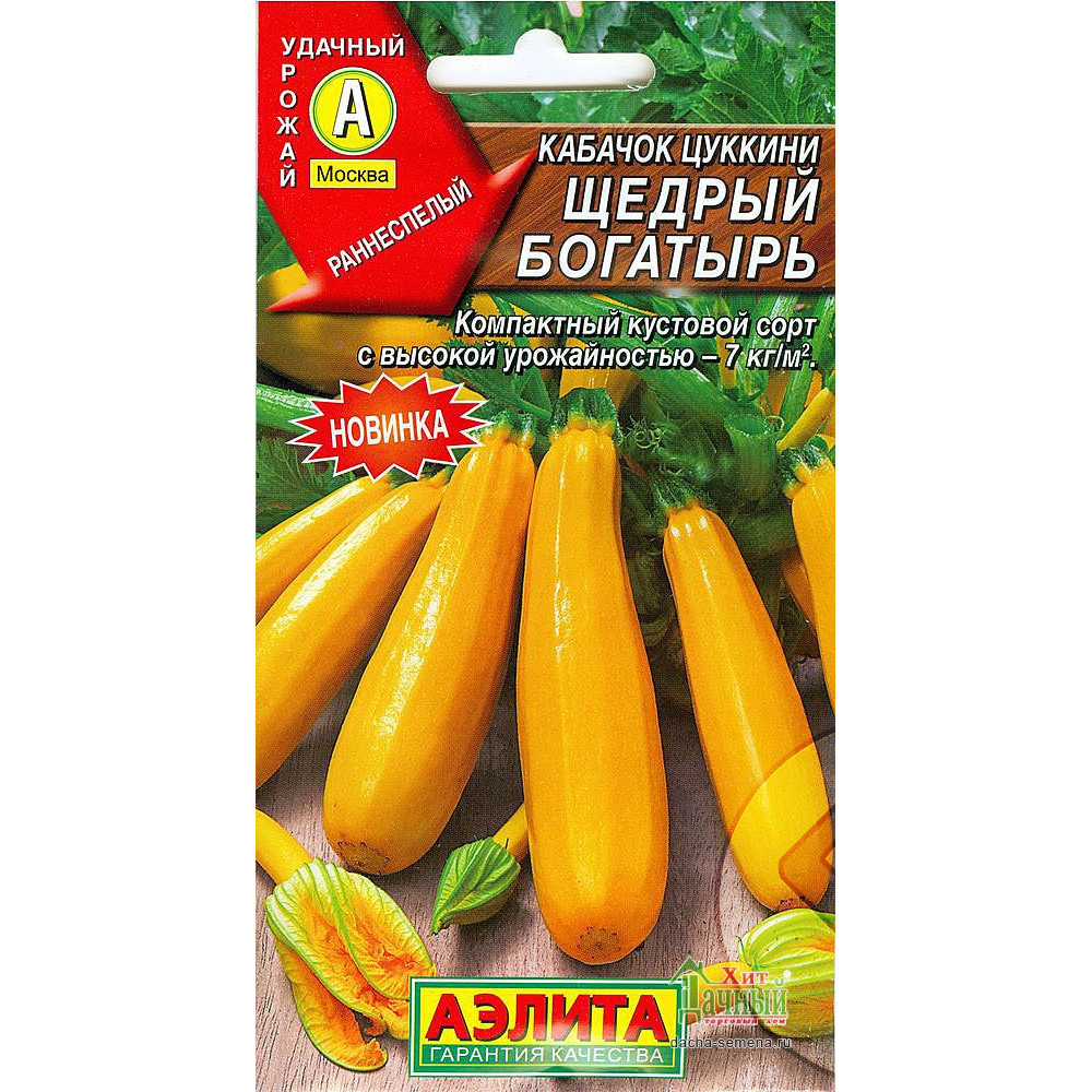 Раннеспелый кустовой сорт. Отличается преимущественно женским типом цветения. От всходов до первого сбора урожая 38-45 дней. Плоды массой около 0,8 кг, с тонкой оболочкой. Мякоть кремово-желтая, нежная, с высоким содержанием каротина. Вкусовые качества продукции превосходные. Урожайность – 5-7 кг/м2. Сорт прост в уходе и легко удается даже начинающим огородникам. Подходит для консервирования.