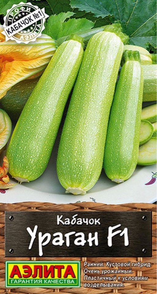 Серия состоит из сортов и гибридов, которые получены методом классической селекции. Кустовой гибрид цуккини раннего срока созревания. От появления всходов до получения урожая проходит 40-45 дней. Кабачки средней массы, зеленоватые, с тонкой кожицей и нежной мякотью. Плюсы выбора гибрида Ураган: стабильно высокая урожайность даже при перепадах летних температур, выравненность плодов, отличное качество продукции.