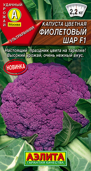 Яркие головки с очень нежным вкусом. Гибрид урожайный и неприхотливый, созревает спустя 80-82 дня после высадки рассады. Соцветия фиолетовые, выровненные, плотные, массой 1,8-2,2 кг. Частично укрыты от солнечных лучей. Растения мощные, с вертикальной розеткой листьев и хорошо развитой корневой системой. Головки содержат повышенное количество антоцианов – веществ, предотвращающих болезни сердца и кровеносной системы. Во время приготовления на пару или в кляре соцветия почти не теряют окраску; при варке лучше добавить в воду немного лимонной кислоты. Пригодны для заморозки. Урожайность 7-9 кг/м2.