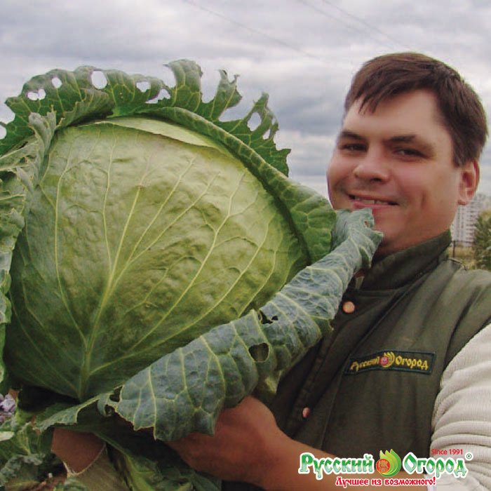 Капуста Русский Размер белокочанная – классический урожайный сорт с небывало крупными, отборными кочанами: при создании оптимальных условий они вырастают до массы 15 кг! Кочаны округло-плоские, плотные, белые на разрезе, необыкновенно хороши для квашения! Изумительный вкус, а также хорошая транспортировка и достаточно длительное хранение плодов. Множество плюсов, которые на протяжении долгих лет успели полюбить многие садовники!