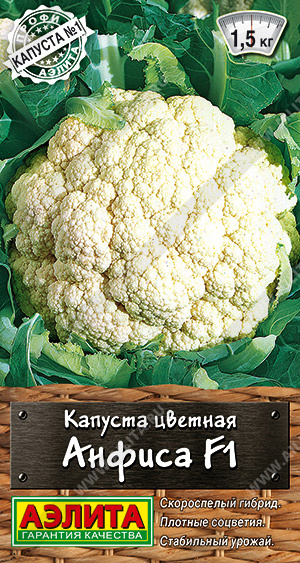 Серия состоит из сортов и гибридов, которые получены методом классической селекции. Новый раннеспелый гибрид цветной капусты. Его ценность в устойчивости растений к комплексу неблагоприятных факторов среды, стабильно высокой урожайности и выравненности головок. От появления всходов до срезки первой продукции проходит 95-100 дней. Головка сливочного оттенка, плотная, массой до 1-1,5 кг, листьями не прикрыта. При своевременной уборке урожая соцветие сохраняет однородный цвет, не утрачивает структуру. Вкус свежей и приготовленной продукции отличный.