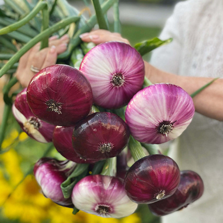 Почти все туристы, которые бывали в Крыму, хоть раз да привозили домой этот вкуснейший сорт. Плоские луковицы удивительно приятного вкуса, сочные, богаты витамином С. Благодаря низкому содержанию эфирных масел в их вкусе отсутствует горечь и острота. Окраска наружных чешуй фиолетово-красная, внутри – светло-фиолетовая и белая с фиолетовым эпидермисом. Сорт обладает лечебными свойствами: улучшает аппетит, очищает почки, снижает содержание сахара в крови. Для употребления в свежем виде.