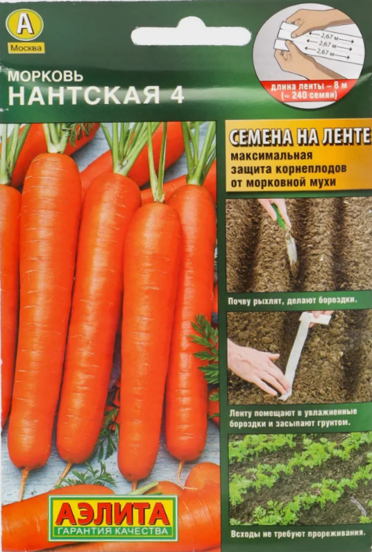 Посев: почву разрыхляют. Ленту помещают в хорошо увлажненные бороздки на подготовленной грядке, на глубину 1,5-2 см и засыпают грунтом, поливают. ДО ПОЯВЛЕНИЯ ВСХОДОВ ГРЯДКУ НАКРЫВАЮТ ПЛЕНКОЙ, ПОДДЕРЖИВАЯ ВЕРХНИЙ СЛОЙ ПОЧВЫ ВО ВЛАЖНОМ СОСТОЯНИИ (НЕ ДОПУСКАЯ ПЕРЕСЫХАНИЯ ЛЕНТЫ). Благодаря идеальному расположению семян на ленте (на расстоянии 3-3,5 см) всходы не требуют прореживания, и растения могут равномерно развиваться.