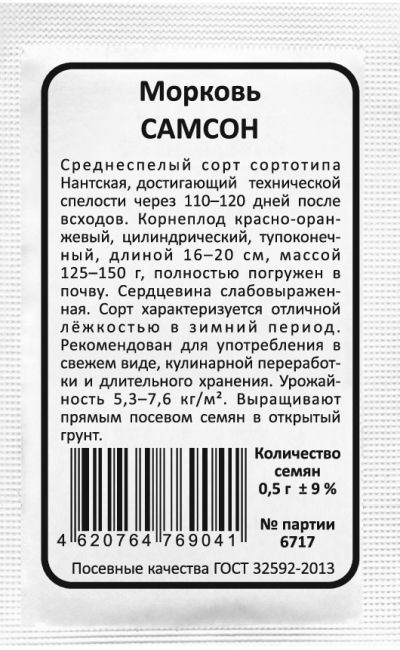 Рекомендуется для потребления в свежем виде, переработки и для длительного хранения. Морковь выращивают прямым посевом семян в грунт ранней весной. Глубина заделки семян не более 1-2 см. Схема посева 20х4 см. Для формирования крупных, выровненных корнеплодов всходы необходимо проредить, оставив между растениями 5-7 см. Дальнейший уход заключается в регулярных поливах, рыхлении почвы, подкормках, но помните, что избыток азота и воды задерживает рост корнеплодов, а для нормального развития требуется калий. Для получения ранней продукции рекомендуется посев под зиму в конце октября – начале ноября.
