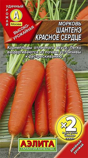 Среднеспелый сорт, от всходов до уборки 100-120 дней. Корнеплоды сортотипа Шантенэ, массой 110-200 г, длиной 13-15 см. Мякоть оранжевая, нежная, отличного вкуса, сладкая и сочная. Сорт подходит для свежего потребления, переработки, длительного хранения и замораживания. Устойчив к цветушности. Пригоден для выращивания на тяжелых почвах. Урожайность – 5-9 кг/м2.