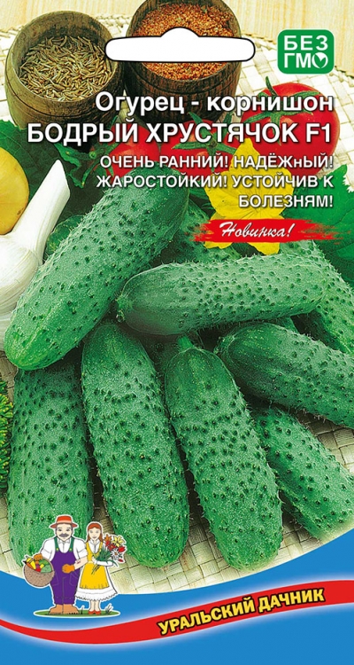 Надёжный раннеспелый гибрид женского типа цветения для выращивания в плёночных теплицах и открытом грунте. Зеленцы зелёные, с полосами средней длины, крупнобугорчатые, белошипые, длиной 10-11 см, плотные, сладкие, хрустящие. Гибрид устойчив к мучнистой росе, пероноспорозу, фузариозу и высоким температурам.