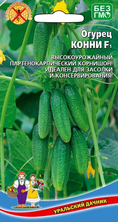 Раннеспелый самоопыляемый гибрид с пучковым образованием завязей и длительным плодоношением. Плоды цилиндрические, мелкобугорчатые, с белым опушением, длиной 7-9 см, крепкие, сладкие, хрустящие, без горечи. Устойчив к мучнистой росе и корневой гнили. Вкусовые качества свежих и консервированных плодов отличные.