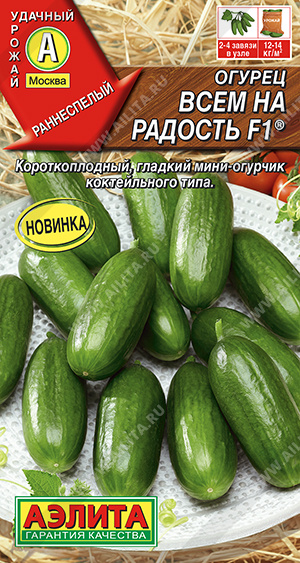 Партенокарпический гибрид коктейльного типа. Рекомендуется для теплиц и открытого грунта. Раннеспелый, от всходов до начала съемной спелости 45-50 дней. Растение длинноплетистое, с сильным ветвлением. В узле закладывается 2-4 завязи. Зеленец гладкий, короткоплодный – 8-10 см. Масса плода 80-100 г. Кожица тонкая, мякоть очень сочная и хрустящая. Гибрид отлично подходит для свежего потребления, приготовления салатов и маринования. Урожайность под пленкой 12-14 кг/м2.