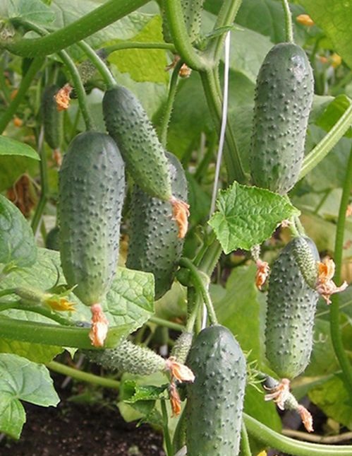 Скороспелый и урожайный партенокарпический гибрид с букетным типом формирования завязей! В каждом узле от 2 до 5 завязей. Через 45 дней после всходов уже вступает в плодоношение. Плоды корнишонного типа, бугорчатые, белошипые, длиной 8-11 см, не перерастают. Вкусовые и засолочные качества плодов отличные. Гибрид устойчив к мучнистой росе, оливковой пятнистости, вирусу обыкновенной огуречной мозаики, толерантен к ложной мучнистой росе. Подходит для выращивания в открытом грунте и всех типах укрытий.