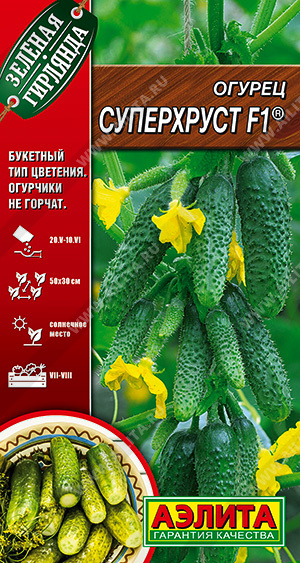 Раннеспелый партенокарпический гибрид с пучковым заложением завязей. Плодоношение длительное, в каждом узле формируется по 4-6 огурчиков. Первый урожай собирают на 44-48 день после всходов. Плоды короткие, длиной 9-11 см, устойчивые к деформированию, не желтеют и не перерастают. Зеленцы сочные, хрустящие, замечательного вкуса, не горчат. При засолке и консервировании сохраняют плотность и упругость. Гибрид устойчив к МР и ЛМР, ВОМ. Урожайность в пленочных теплицах достигает 13-15кг/м.кв.