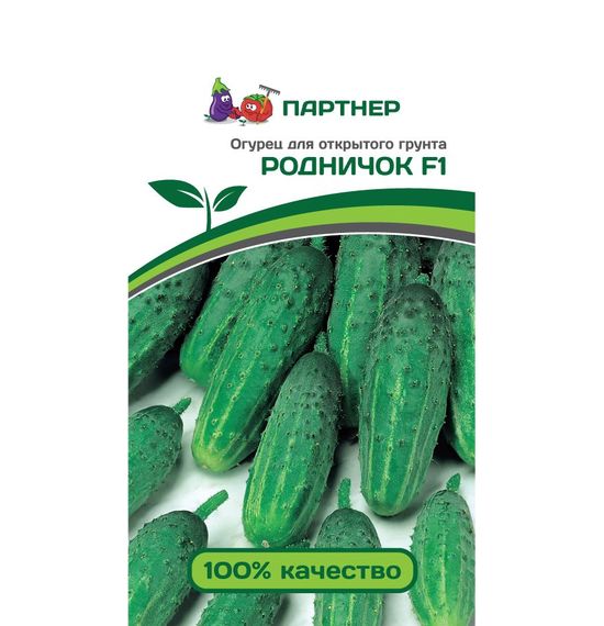 Среднеспелый, пчелоопыляемый гибрид. От всходов до начала плодоношения 49-50 дней. Растение среднерослое, длинноплетистое, в одном узле может формировать 2-3 плода. Зеленец гладкий, слабобугорчатый, длиной 9-12 см, массой 80-100 г. Опушение у огурчиков редкое, сложное: черное и бурое. Вкусовые качества отличные, огурчики приятно хрустят и не горчат. Рекомендуется для засола и консервирования. Транспортабельность плодов хорошая. Гибрид устойчив к мучнистой росе и ложной мучнистой росе, бурой пятнистости, аскохитозу. Плотность посадки 3-4 растений/м². Урожайность свыше в открытом грунте до 7 кг/м², в закрытом грунте – 15,0 -20,0 кг/м².