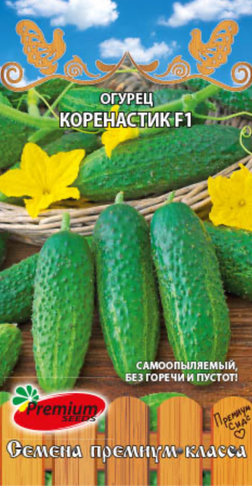 Раннеспелый, высокоурожайный, партенокарпический гибрид для выращивания в открытом и защищенном грунте. Растение индетерминантное, средневетвистое, женского типа цветения. Число женских цветков в узле преимущественно два. Огурчик хрустящий, короткий, цилиндрический, белошипый с бугорками среднего размера очень вкусный и ароматный, без горечи и пустот. Массой 90-105 г. Хорош как в салатах, так и в засолке.