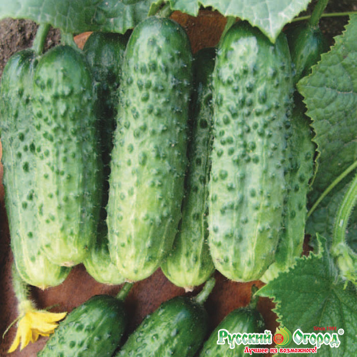 Среднеспелый партенокарпический гибрид, созревающий за 50-55 дней. Растения женского типа цветения, вь каждой пазухе формируется по 2-3 завязи. Белошипые, крупно-бугорчатые зеленцы темно-изумрудной окраски, длиной 9-10 см хороши для засола и свежего потребления. Для выращивания в открытом грунте и пленочных теплицах.