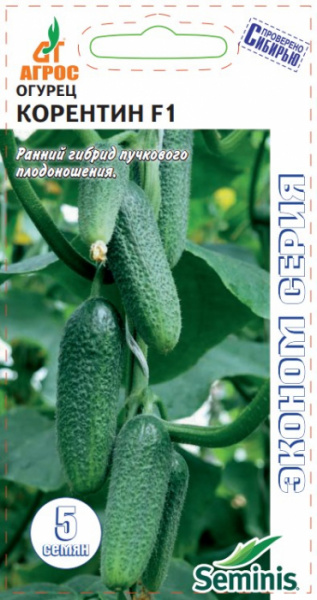 Высокоурожайный гибрид очень раннего срока созревания, пучкового плодоношения. Растение индетерминантное, среднерослое, слабоветвистое, преимущественно женского типа цветения. Плоды однородные, цилиндрической формы, длиной 10-12 см, мелкобугорчатые, высокого качества, без горечи. Масса плода 66-100 г. Предназначен для свежего употребления и переработки.
