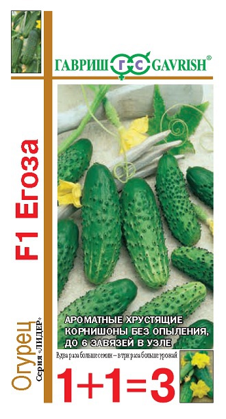 Скороспелый (43-48 дней от всходов до плодоношения) партенокарпический гибрид с букетным заложением завязей (до 4-6 в одном узле). Растения сильнорослые, с ограниченным ростом боковых побегов, что облегчает уход и уборку урожая. Предназначен для выращивания в теплицах, под временными укрытиями и в открытом грунте. Плоды цилиндрические, зеленые, длиной 10- 12 см, с четкими, крупными бугорками, черношипые, массой 110-120 г. Зеленцы красивые, товарные, вкусные, хрустящие, ароматные, хороши в засолке,для маринования и в свежих салатах. Гибрид устойчив к настоящей мучнистой росе, относительно устойчив к ложной мучнистой росе и корневым гнилям. Урожайность одного растения 6-7 кг.
