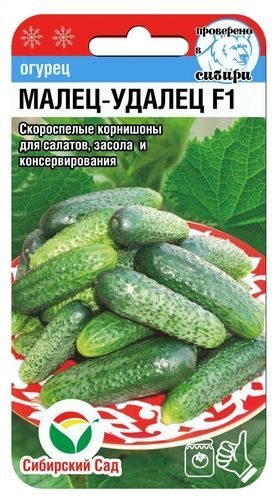 Скороспелый гибрид с аккуратными темно-зелеными плодами корнишонного типа. Период от всходов до начала плодоношения 43-45 дней. Растение женского типа цветения, среднерослое, с ограниченным боковым ветвлением, что значительно облегчает уход и уборку урожая. Завязь букетного типа, в узле формируется 3-4 зеленца массой около 40 грамм, длиной 8-9см. Огурчики хрустящие, плотные, хороших вкусовых качеств. Рекомендуются для употребления в свежем виде, засола и консервирования. Гибрид устойчив к основным заболеваниям огурца, высокоурожаен – до 9кг/кВ.м. Предназначен для выращивания в весенне-летних теплицах и различных временных укрытиях. Выращивают прямым посевом семян в грунт и рассадным способом. В остекленные или пленочные теплицы, тоннели с начала мая высеивают семена или с середины мая высаживают 20-25-дневную рассаду, имеющую 3-5 настоящих листьев.