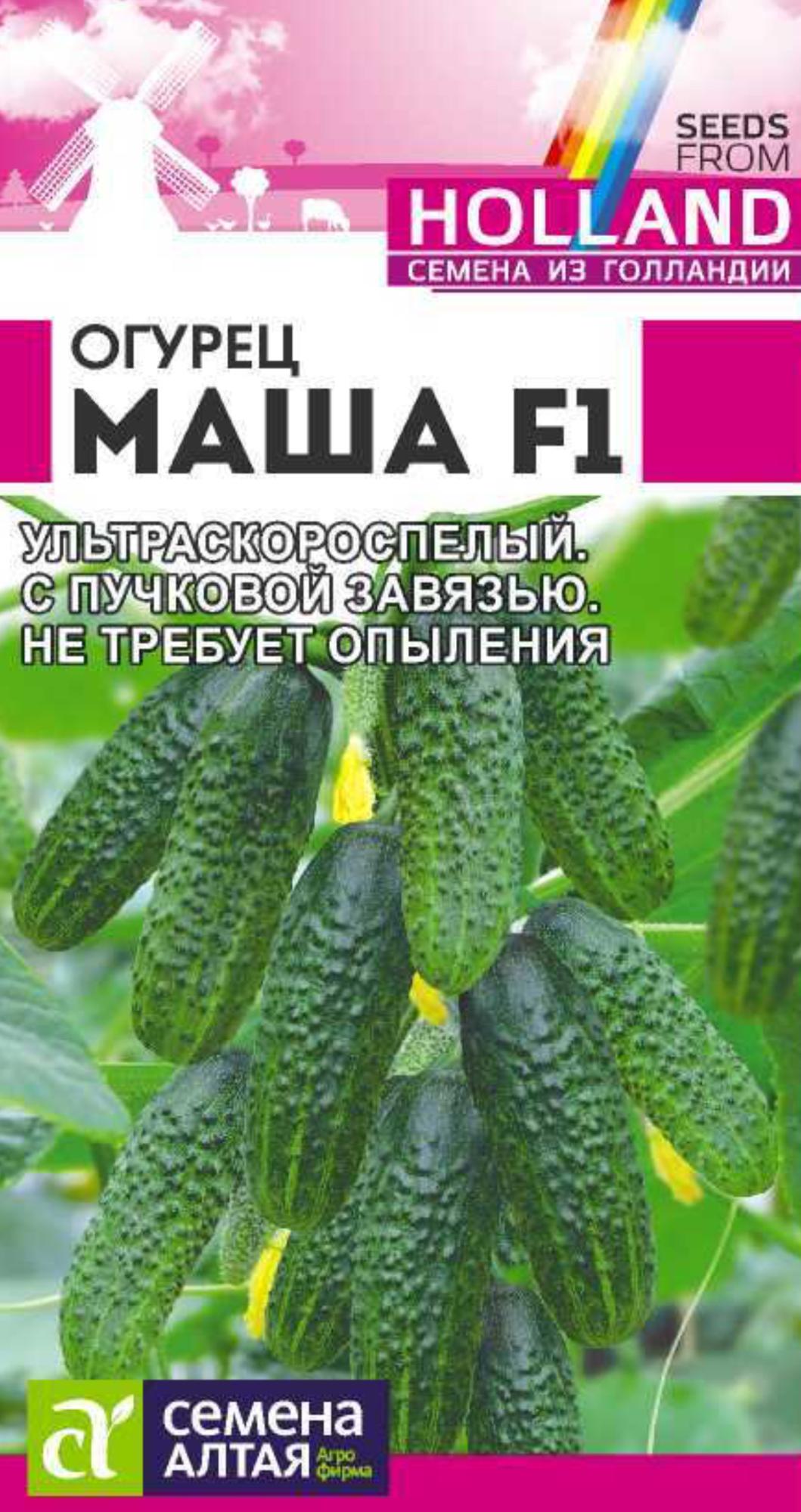 Ультраскороспелый, с пучковой завязью, вступающий в плодоношение на 39-41 день, раньше других партенокарпических гибридов. Корнишоны зеленые, крупнобугорчатые, с небольшой семенной камерой, формируются по 5-6 в узле. Высокие вкусовые качества и дружное созревание. Выращивается в открытом и защищенном грунте, устойчив к комплексу болезней.
