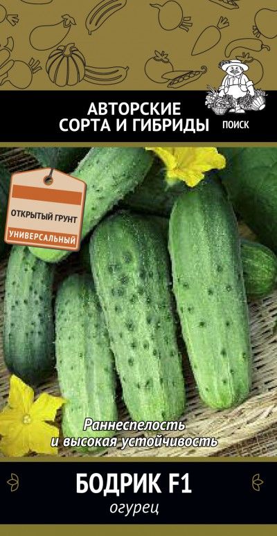 Пчелоопыляемый раннеспелый гибрид для выращивания в открытом грунте. Период от полных всходов до первого сбора урожая 42-45 дней. Гибрид преимущественно женского типа цветения. Плоды длиной 10-11 см, диаметром 3-4,5 см, массой 90-100 г, зеленые с полосами средней длины, крупнобугорчатые, белошипые. Гибрид устойчив к мучнистой росе, пероноспорозу, фузариозу и высоким температурам. Прекрасно подходит для засолки и маринования.