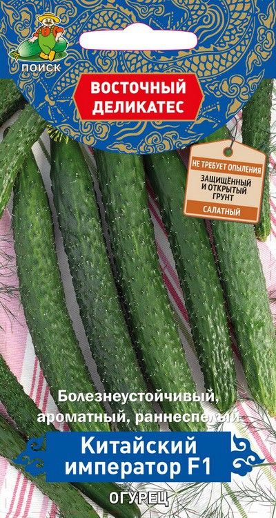 Партенокарпический, раннеспелый гибрид для выращивания в пленочных теплицах и открытом грунте. Период от всходов до сбора урожая 42-45 дней. Плод удлиненно-цилиндрический, длиной 37-40 см, диаметром 5,0-5,5 см, массой 350-400 г, равномерной темно-зеленой окраски, блестящий, крупнобугорчатый. Гибрид устойчив к мучнистой росе, пероноспорозу, фузариозу и высоким температурам. Для употребления в свежем виде и в салатах.