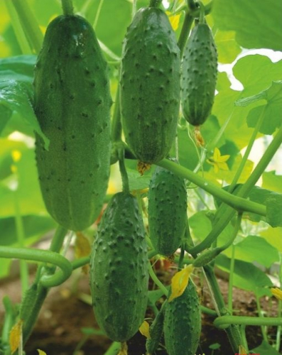 Для открытого и защищенного грунта. Среднеранний (50-52 дня) партенокарпический гибрид с женским типом цветения. среднеранний, 47-50 дней повышенная жаростойкость. Растение среднерослое, в каждом узле по 2-4 завязи, плод темно-зеленый, частобугорчатый, белошипый. Генетически без горечи. Обладает хорошими вкусовыми качествами. Общая урожайность до 19 кг/м2, ранняя до 9 кг/м2. Рекомендуется для получения ранней продукции в теплицах Хорошо переносит высокие летние температуры.