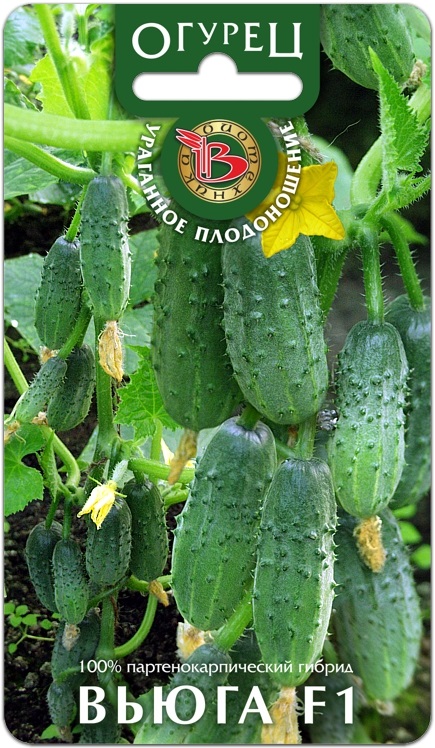 Завязь пучковая - 4-5 плодов. Зеленец маленький - длиной 6-8 см, массой 60-68 г, темно-зеленого цвета с белыми полосами, овально-цилиндрической формы, крупнобугорчатый, опушение сложное, бурое.