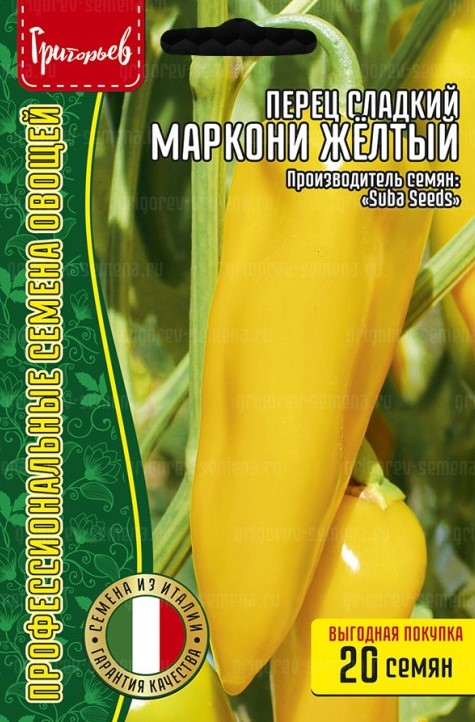 Этот сладкий итальянец – воплощение сочности, вкуса и яркости на каждый день. Куст мощный, высокорослый (примерно 50-60 см), формирует крупные жёлто-оранжевые плоды длинные (20-30 см) и крупные (150-300 г) с плотной стенкой толщиной 3-4 мм. Нежные и сочные перцы созревают в среднем через 100-115 дней, отлично подходят для жарки на гриле, фаршировки, запекания и употребления свежими, а их насыщенный сладкий вкус делает этот сорт универсальным в кухне.