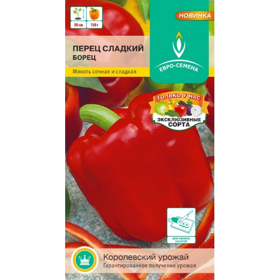 Среднеспелый высокоурожайный сорт для открытого грунта и временных пленочных укрытий. Период от всходов до начала сбора плодов 100-110 дней. Растение полуштамбовое, высотой 40-50 см. Плоды крупные, кубовидные, слаборебристые, толстостенные, красные, глянцевые, массой 140-150 г. Мякоть сладкая, сочная, очень вкусная. Рекомендуется для использования в свежем видев в салатах.