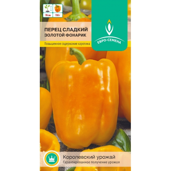 Раннеспелый высокоурожайный сорт с дружным созреванием плодов. Период от полных всходов до первого сбора плодов 115-120 дней. Рекомендован для открытого грунта и пленочных укрытий. Растение штамбовое, сомкнутое, высотой 60-70 см, не требует специальной формировки. Плоды пониклые, конусовидные, глянцевые, оранжевые, толстостенные (7-8 мм), с сочной, сладкой мякотью, насыщенным вкусом и ароматом. Массой 100-110 г. Плоды очень вкусные, внешне привлекательные. Оранжевая окраска спелых плодов обусловлена повышенным содержанием в них каротина. Прекрасно подходит для салатов, маринования, фарширования, приготовления лечо.