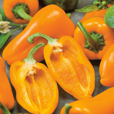 За уникальным очень насыщенным сладким вкусом этого перца «все тайны Лувра», а точнее, тайны ультраранних порционных гибридов с высокой урожайностью и устойчивостью к вирусным заболеваниям. У небольших глянцевых плодов (7-9 см) практически отсутствует семенная камера, а содержание сахаров достигает 12%! Они оччччень сладкие! Перцы конической формы темно-зеленого цвета в технической спелости и оранжевого в биологической. «Прелестные, как сама любовь!» С одного растения в открытом грунте вы соберете 3-4 кг плодов и 5-10 кг в закрытом. Кусты компактные, плодоносят дружно и концентрированно. Удобные и легкие при сборе. При длительном хранении не потеряют упругости и вкусовых качеств. «Это сказал Бэкингем!» (для выращивания в открытом и закрытом грунте).