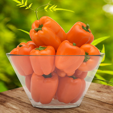 Это перец словно самый настоящий мармелад: необычайно яркий и удивительно сладкий. Урожай длительный и богатый. Плоды крупные четырехкамерные с толстыми стенками и восхитительным вкусом, то, что нужно для свежих салатов. Поспевает рано и имеет прекрасную защиту от вирусов и болезней.
