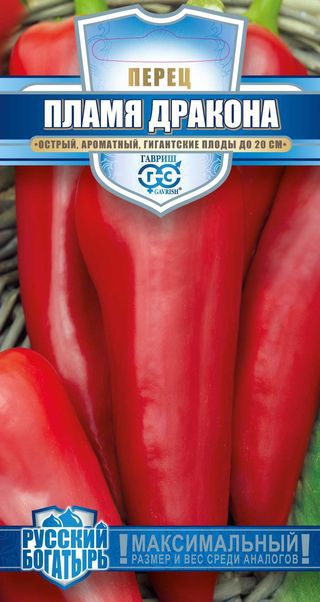 Раннеспелый (100-110 дней от всходов до плодоношения) сорт с гигантскими острыми плодами для пленочных теплиц и открытого грунта. Куст раскидистый, высотой 50-60 см. Плоды очень крупные, длиной 17-20 см, диаметром 5-6 см и массой 120 г, конусовидной формы, с заостренной верхушкой, гладкие, с ароматной острой мякотью. Окраска плодов в технической спелости светло-зеленая, в биологической — красная. Толщина стенки плода 4-5 мм. Измельченные плоды используют в качестве приправы, которая усыливает вкус и добавляет пикантности приготовленным блюдам.