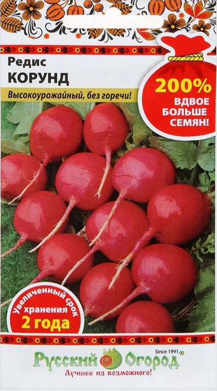 Раннеспелый, от всходов до технической спелости 23-28 дней. Корнеплод округлый, кармино-красный, диаметром 2-3 см, массой до 25 г.. Мякоть плотная отличного слабоострого вкуса. Сорт отличается дружной отдачей урожая, пригоден для выращивания в открытом и защищенном грунте.