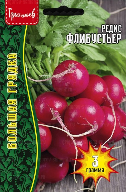 Скороспелый, слабооблиственный, высокопродуктивный сорт. Корнеплод округлой формы, диаметром 5 см, с гладкой поверхностью, красного цвета. Масса корнеплода 30-40г. Мякоть белая, сочная, слабо-острого вкуса, долго не дрябнет. Образует стандартный корнеплод через 20-25 дней после появления всходов.